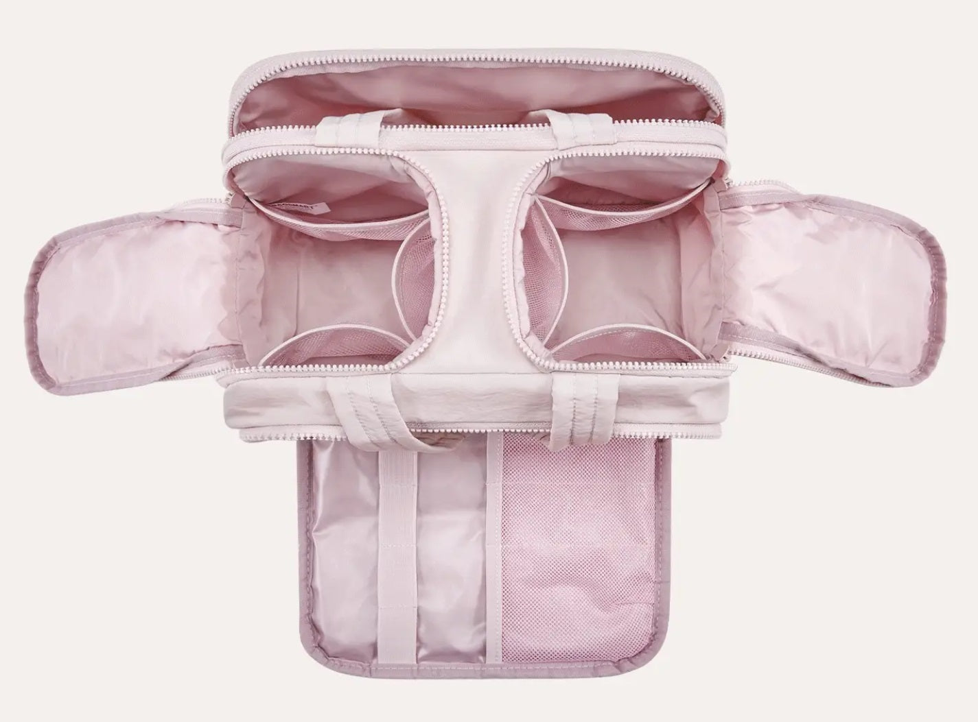 Yes, the Lume Toiletry Bag has 4 compartments with plenty of room for your skincare, makeup, and toiletries. It’s perfect for long trips!